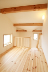 寝室と子ども部屋はスキップフロアを活かして収納庫とロフトを設置しています。高低差を利用することにより実際の敷地面積よりはるかに広大なスペースを産み出すことに成功しました。