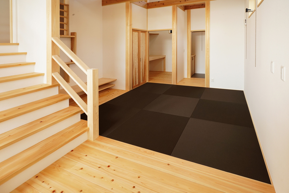 - 琉球畳を敷いた中2階のスペース。リビング用途としても家事スペースとしても使えます。